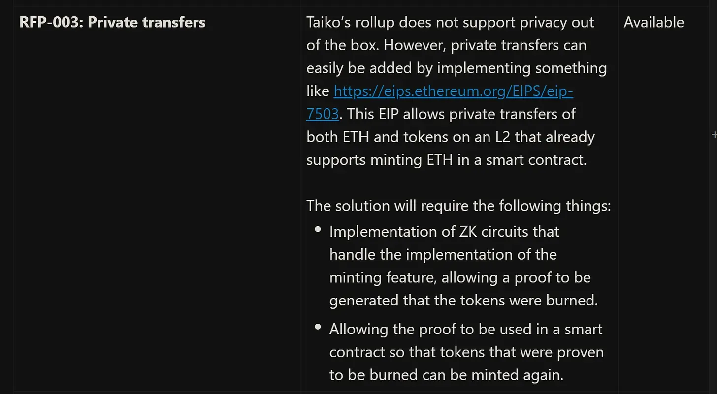 Here, we see that a protocol like Taiko can offer transaction privacy—without making extensive exchanges to its infrastructure—by adopting EIP-7503. This has a key benefit for protocol teams that don’t want to build out a full-scale privacy-focused L2 (a là Aztec v2) but wish to provide basic untraceability and unlinkability to users. The Nethermind team’s proposal to implement EIP-7503 on Taiko is worth reading to get an idea of how EIP-7503 can be implemented by an Ethereum L2.